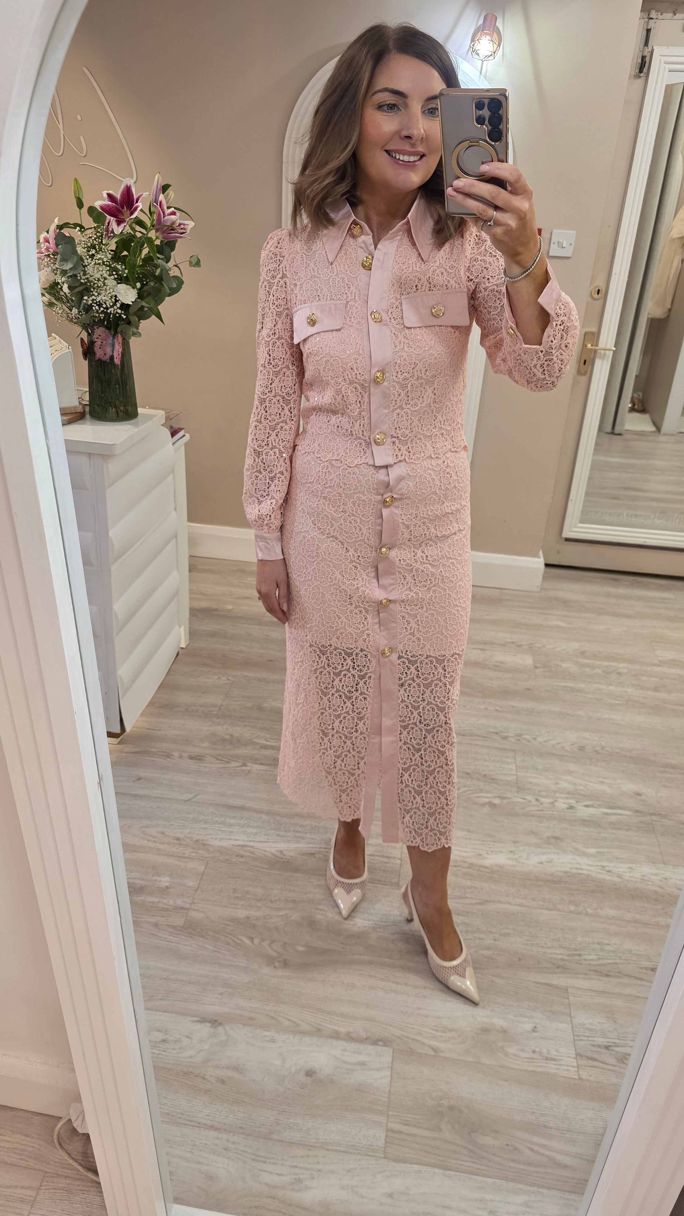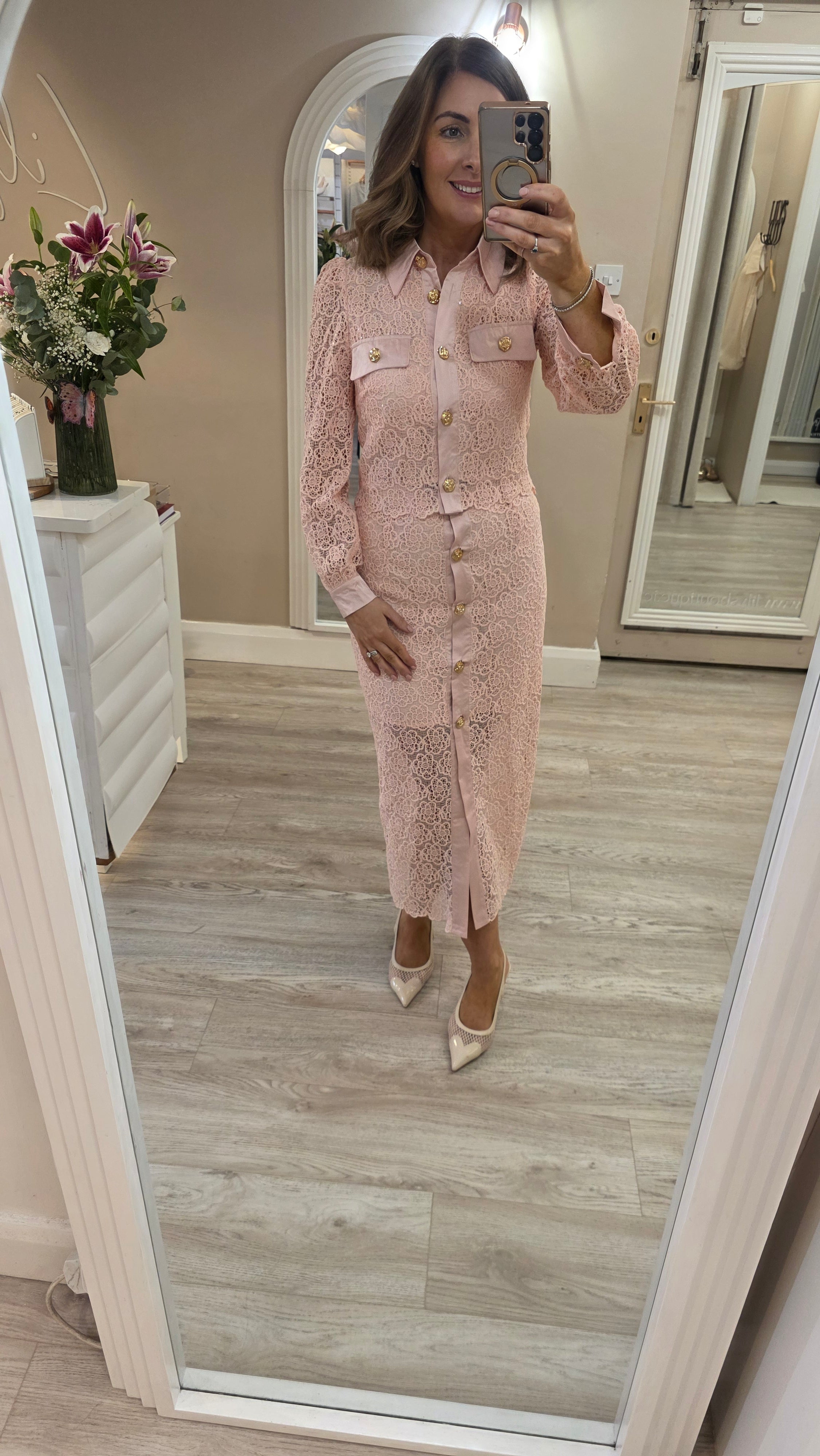 • Length: Midi-length, with the lace hem hitting around the calf.