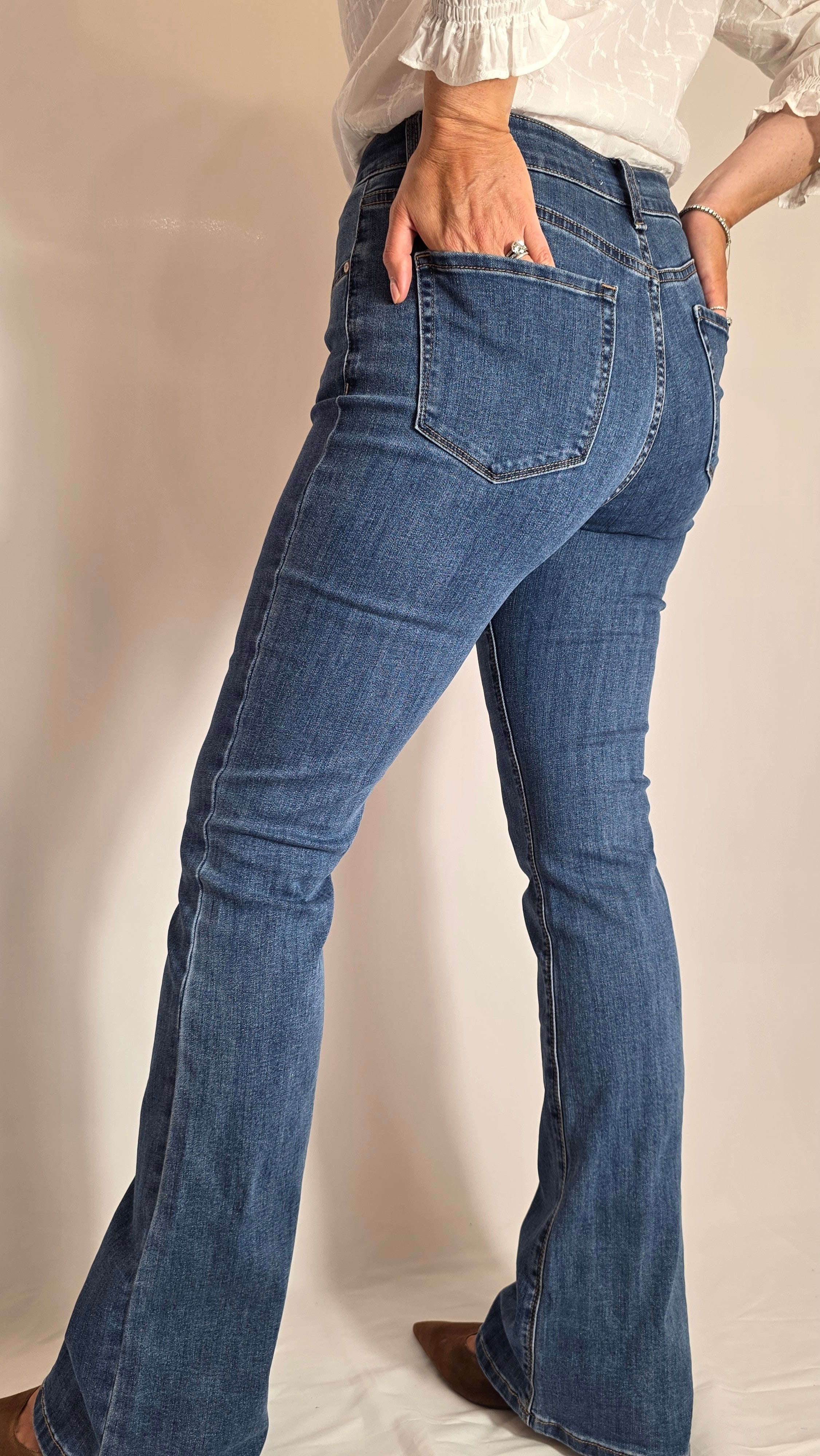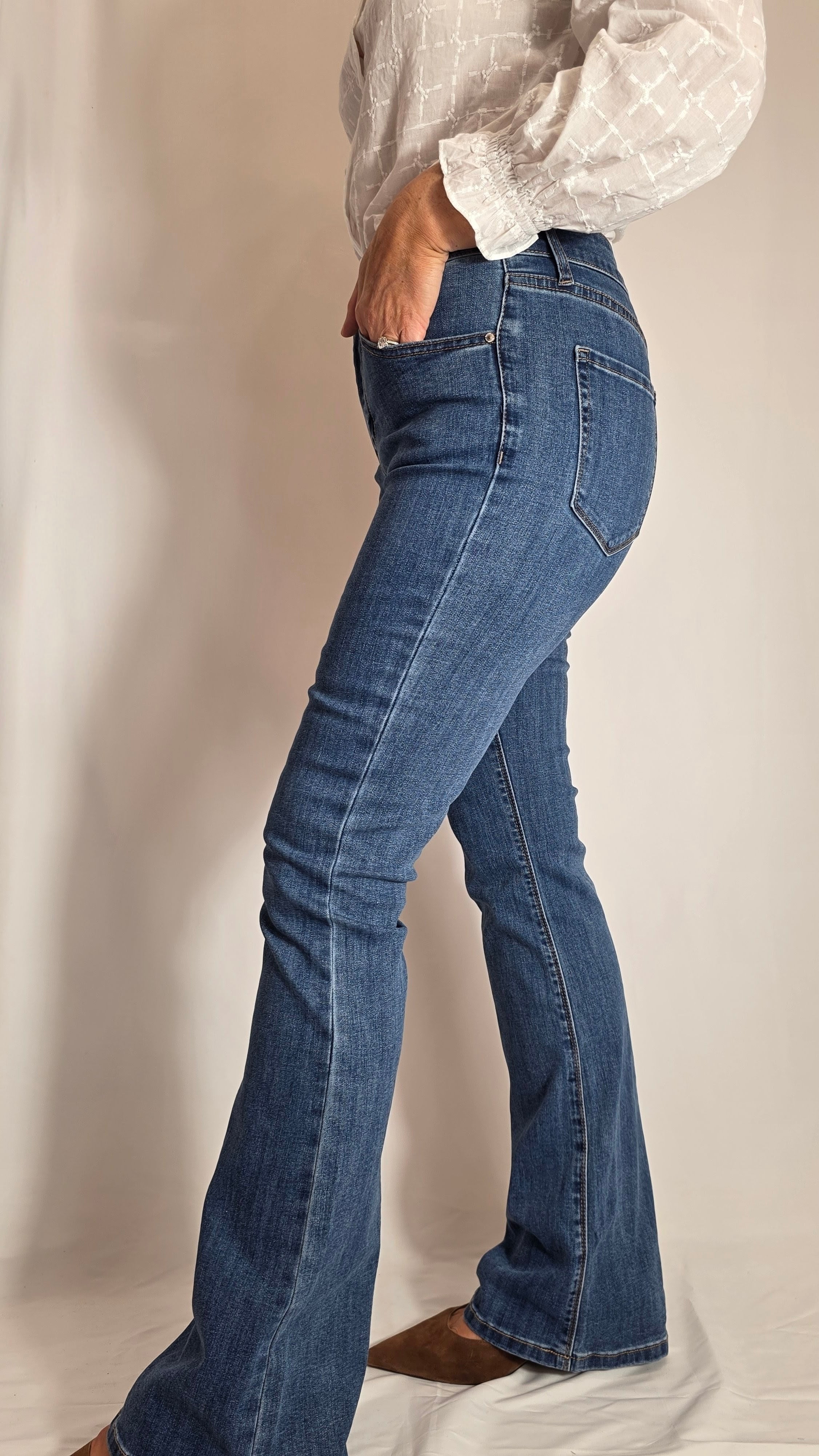 Embrace a classic silhouette with the Emma flare, featuring a slim fit through the thigh and a stylish flare. Versatile and chic, these jeans are the perfect choice for an effortless, high-fashion aesthetic