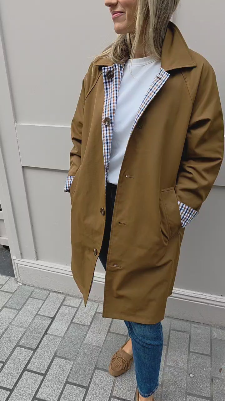 Details: The sleeves are finished so they can be cuffed to reveal the contrasting solid mustard lining/side, adding a stylish pop of color.