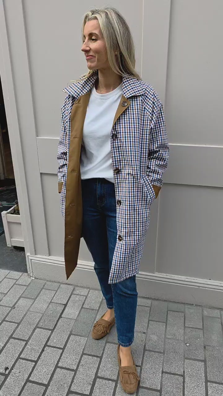 Wear the check side for a preppy, sophisticated look over tailored pieces, or flip it to the solid mustard side for a bold, statement-making pop of color.