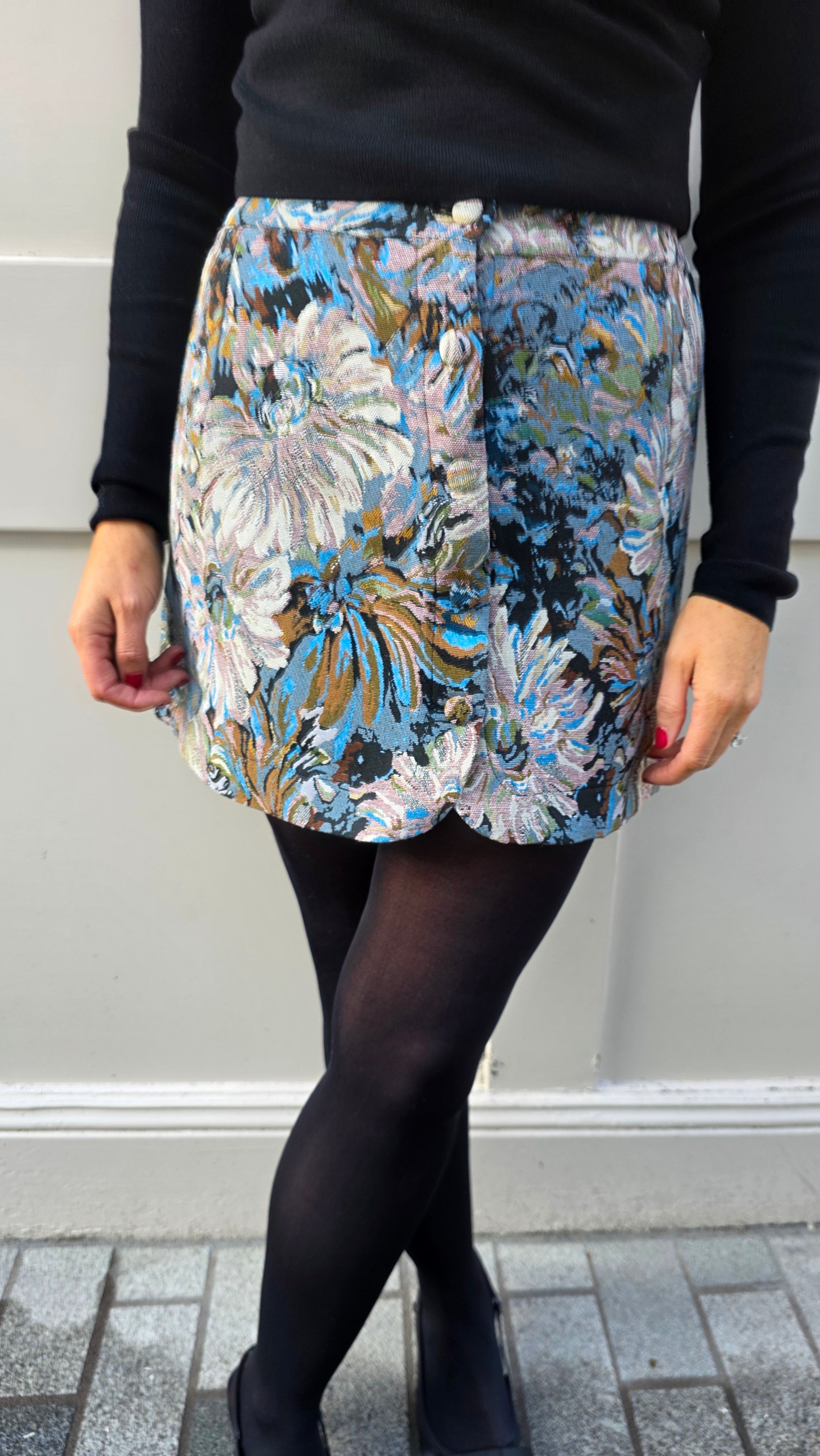 This eye-catching piece perfectly combines the tailored look of a skirt crafted in a luxurious, richly textured jacquard fabric.