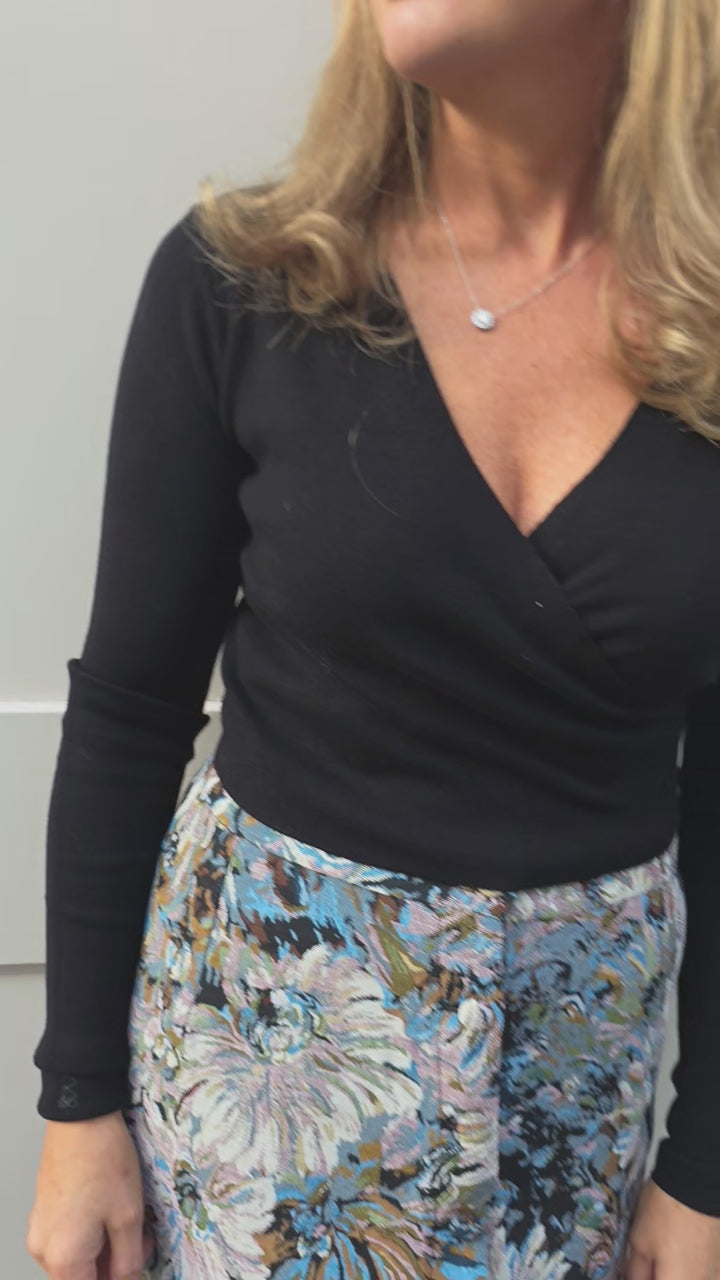 Pair this skirt with a tucked-in solid-colored knit (like the soft pink shown) or a black silk top. Finish the look with opaque tights and boots, or bare legs and heels for an elegant evening outfit.