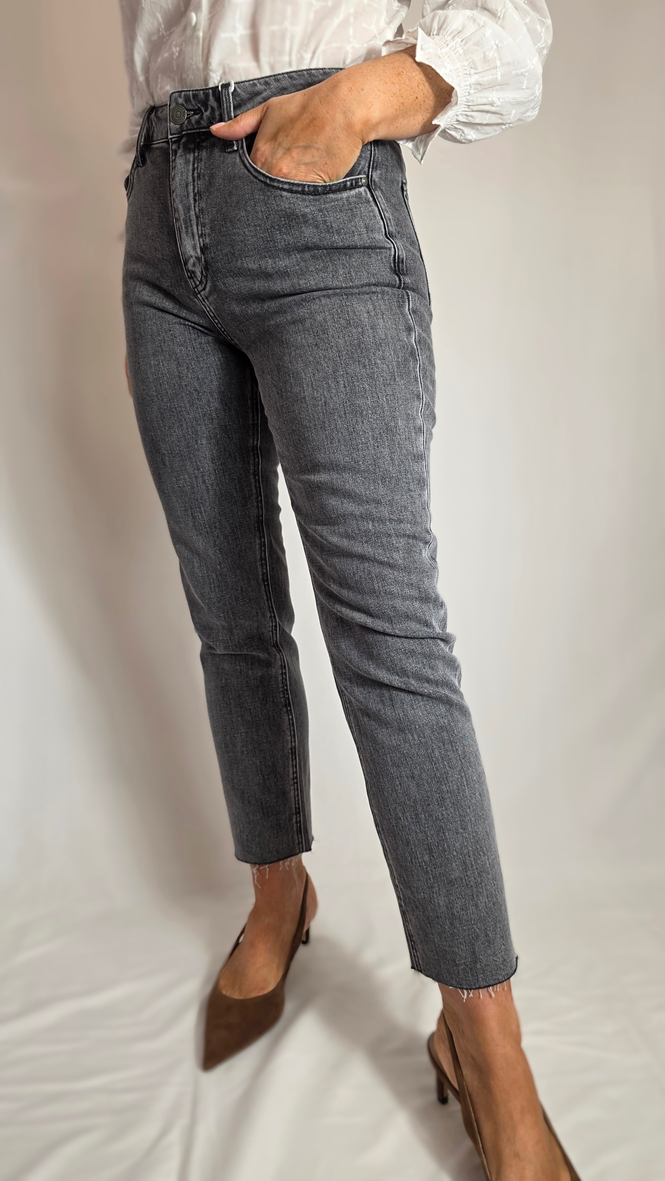 Transition your look with ease in our premium grey denim, featuring a clean straight-leg fit and raw edge. From casual days to evening layers, these jeans provide a stylish foundation for any outfit.